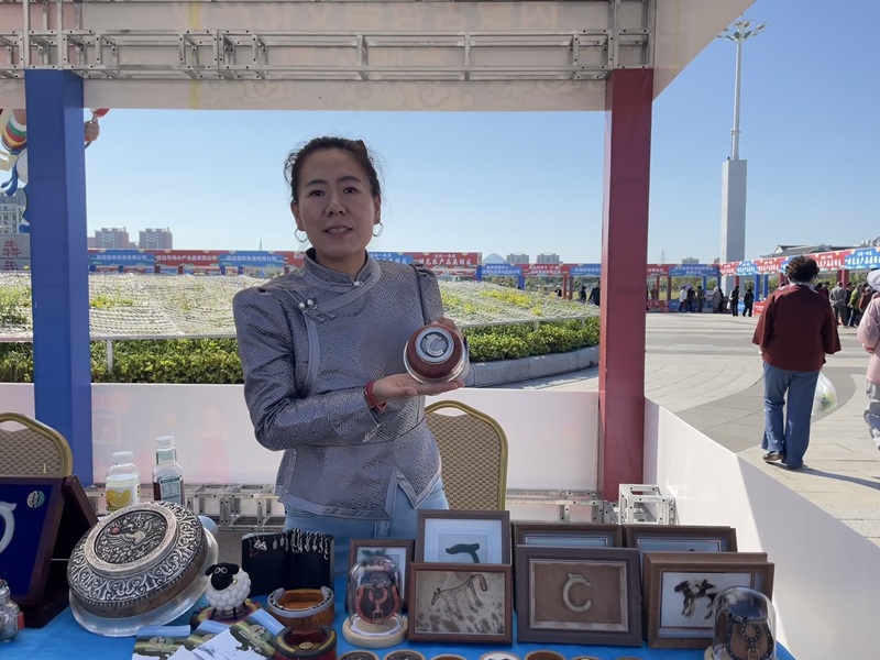 来自内蒙古巴彦淖尔市乌拉特中旗的冀慧芳带来了羊毛毡、马皮冰箱贴等文创产品。“这是一次文化的宣传和交融。”她说,希望借此机会能将家乡的文化宣传出去。汪清县吉货淘商贸有限公司负责人林德谈收获满满:“政府搭台,企业唱戏。一大早就卖出了松子和木耳,销量很好。”