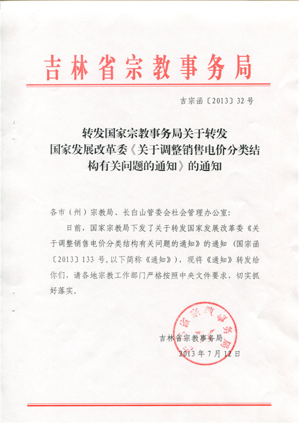 关于印发《吉林省寺观教堂和其他固定宗教活动处所区分标准》的通知11-24